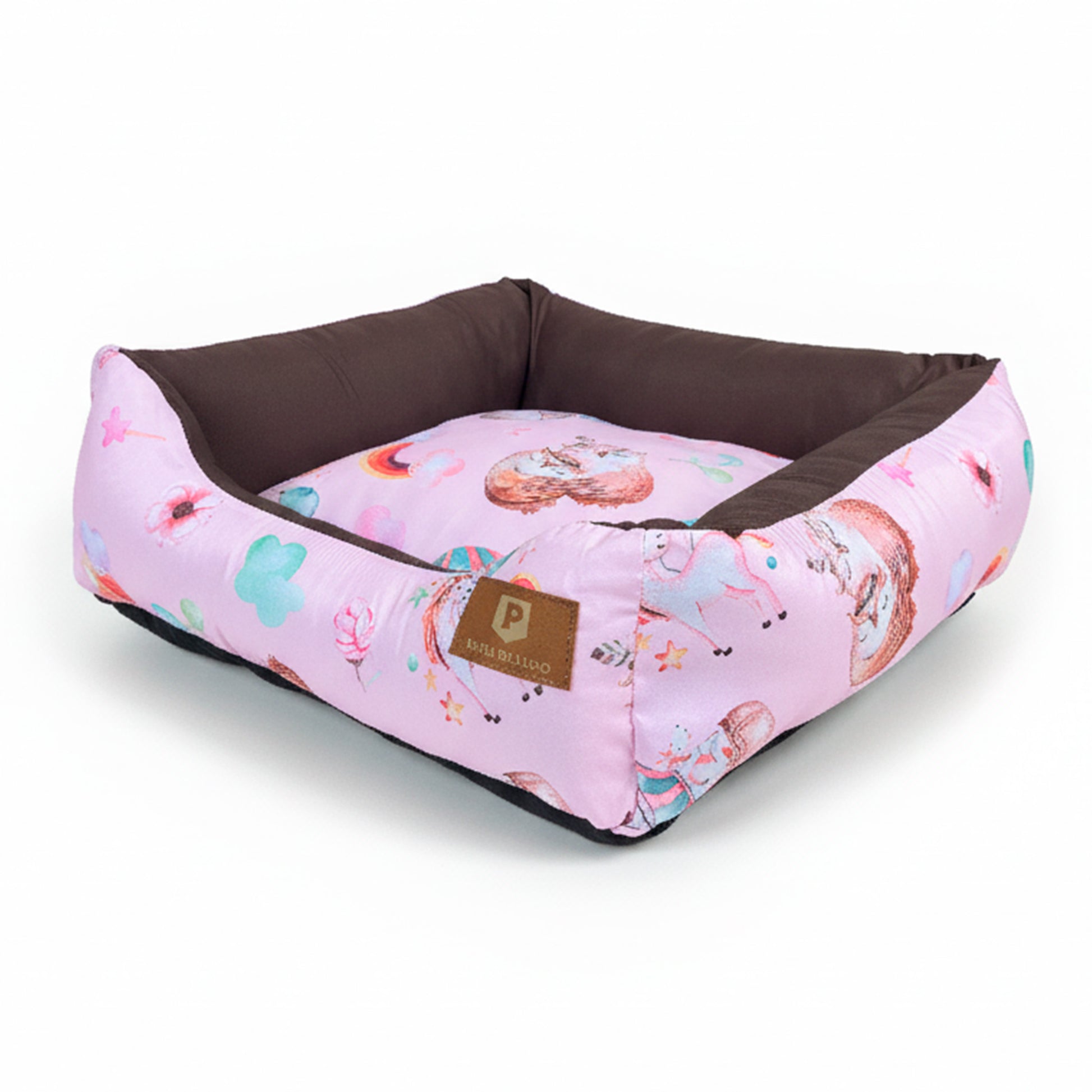 A cama que seu pet sempre sonhou, com um toque mágico. A Cama Premium Corujinha da Patas de Luxo une conforto excepcional e um design encantador, com estampas delicadas de corujinhas e arco-íris em tons de rosa.