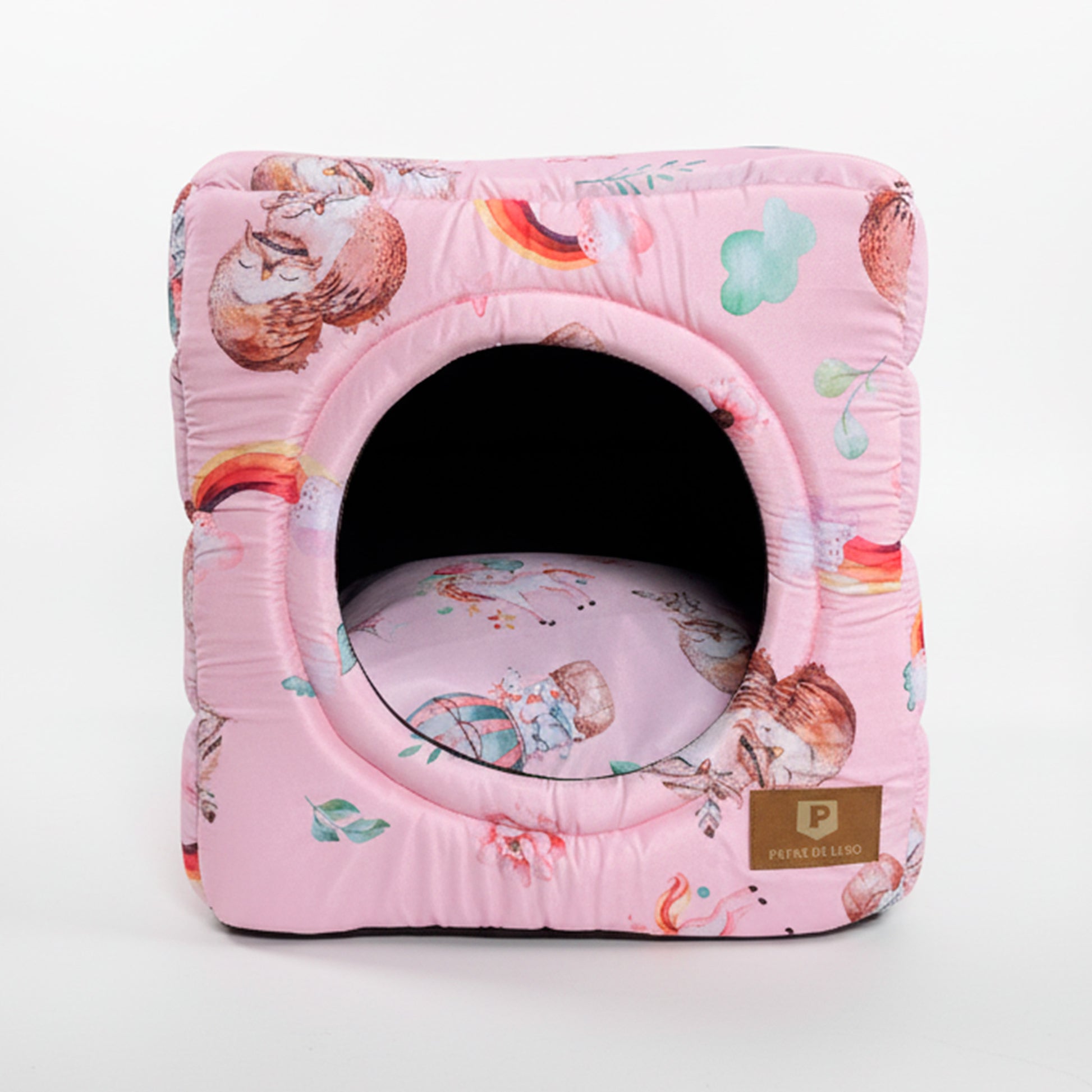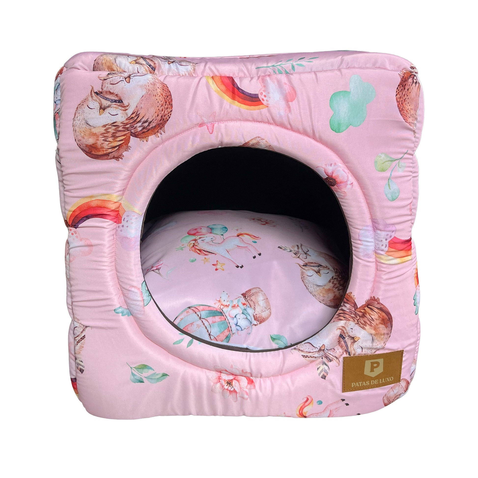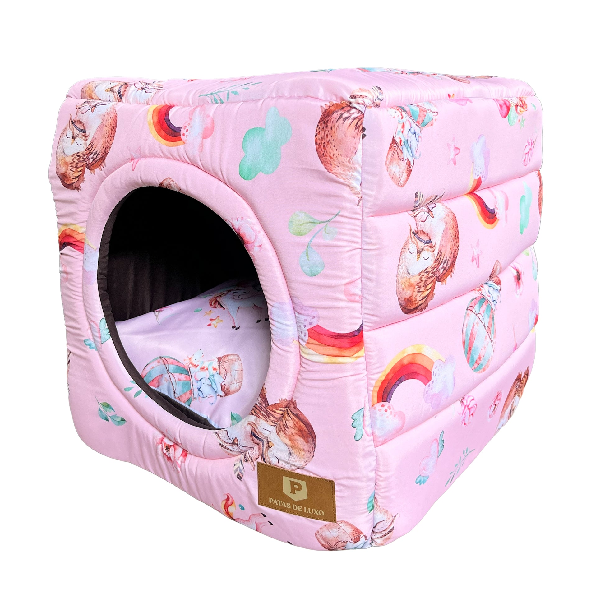Conforto e versatilidade em um só lugar. O Iglu 2x1 Premium Corujinha da Patas de Luxo é o refúgio perfeito, que se transforma em cama aberta em segundos. Com estampa exclusiva de corujinhas e arco-íris, é pura fofura e design.